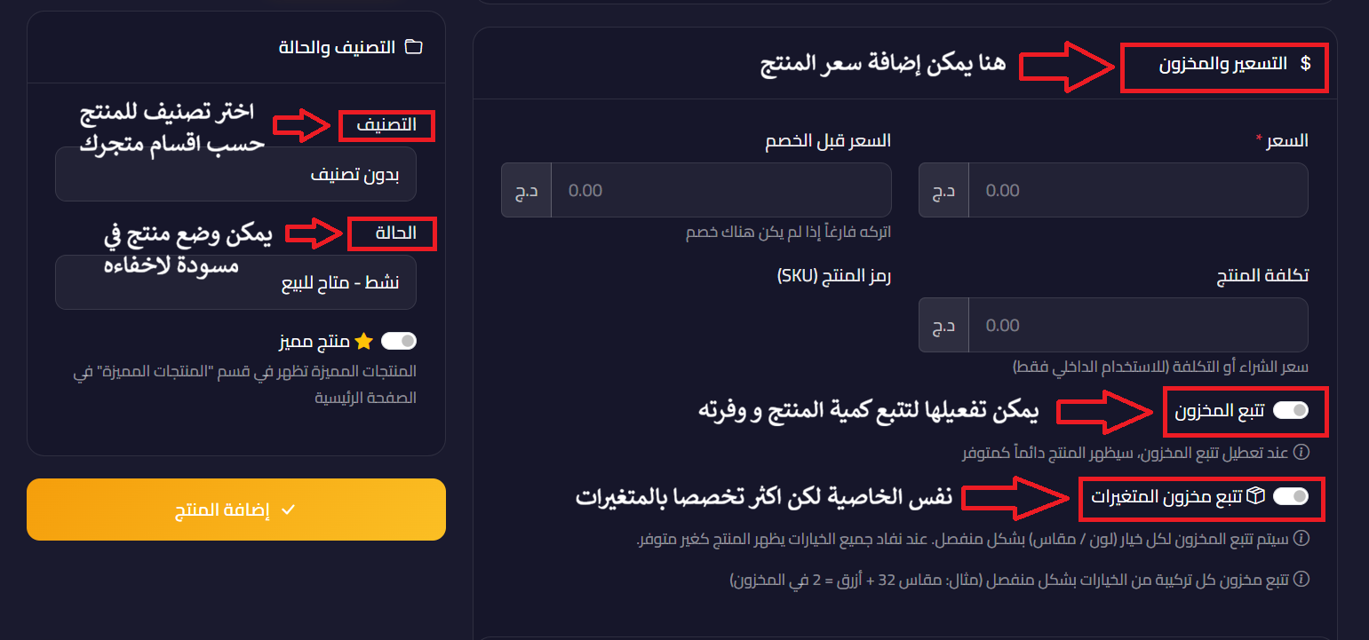 الخطوة الأولى: الوصول إلى خيار المنتجات الخطوة الثانية: كيفية إضافة منتج (الاسم،الصورة، السعر) الخطوة الثالثة : انشاء مجموعة المتغيرات + الباقات و العروض