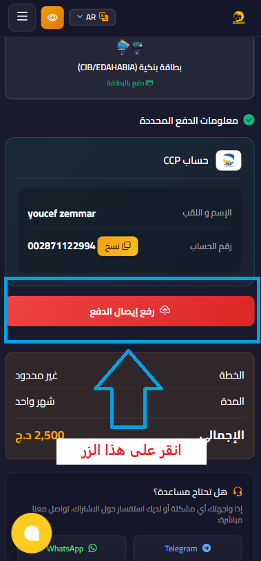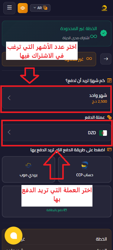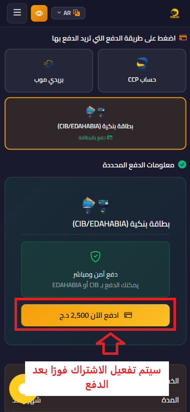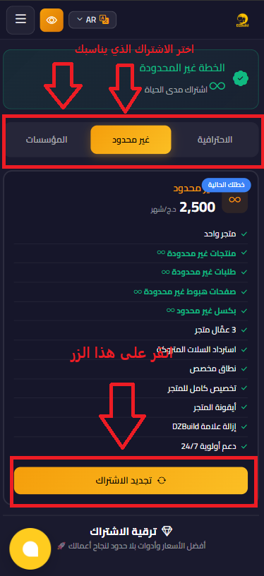 خطوات تجديد أو تفعيل الاشتراك 1 2 3 4 5 6 https://dzbuild.com/dashboard/subscribe للتفعيل الفوري، اختر cib/edahabia
