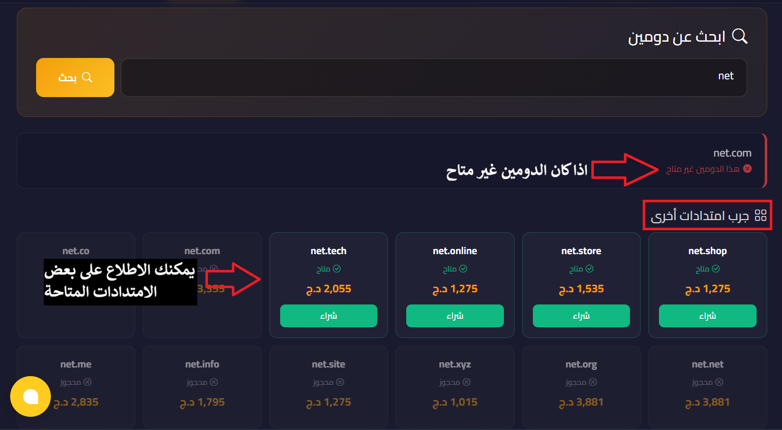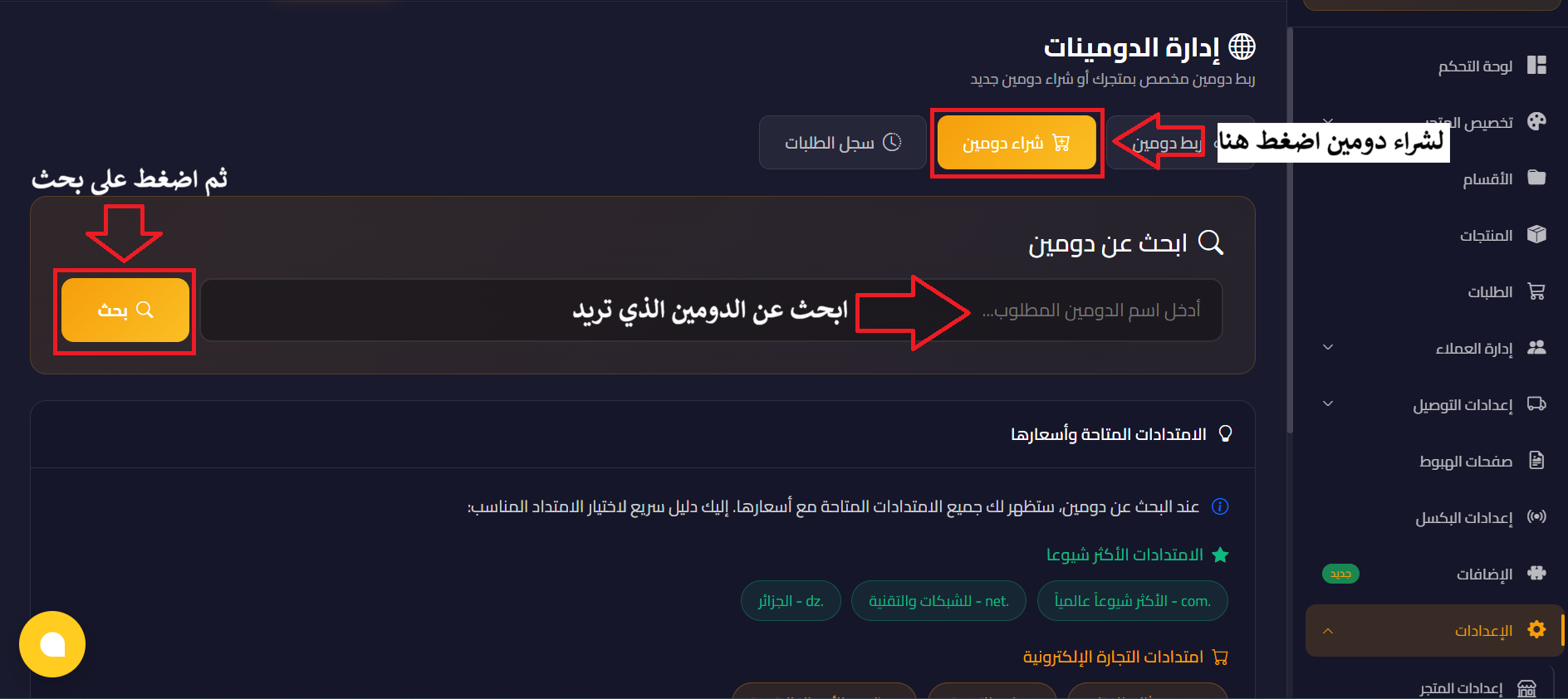 الخطوة الاولى : الوصول للدومينات من لوحة التحكم الخطوة الثانية : كيفية البحث على دومين متاح الخطوة الثالثة : كيفية الشراء